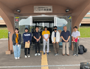 大阪環境カウンセラー協会が展開しているベントナイト実験について詳細確認のため、幌延深地層研究所の学習に参加左から、長尾先生、福山先生