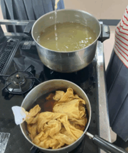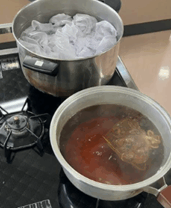 ◎今年度においては、特定外来種オオキンケイギクを使った染色実験を行いました。その染色技術を用いてハンカチを制作し文化祭で販売いたします。